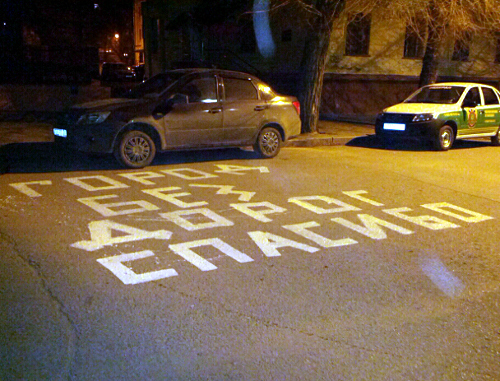В Волгограде активисты промаркировали дороги у здания департамента городского хозяйства