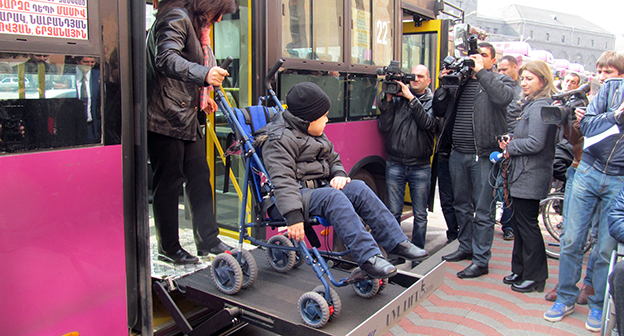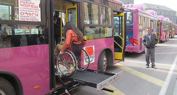Автопарк Еревана пополнили автобусы с лифтами для инвалидов. Фоторепортаж корреспондента "Кавказского узла" Армине Мартиросян